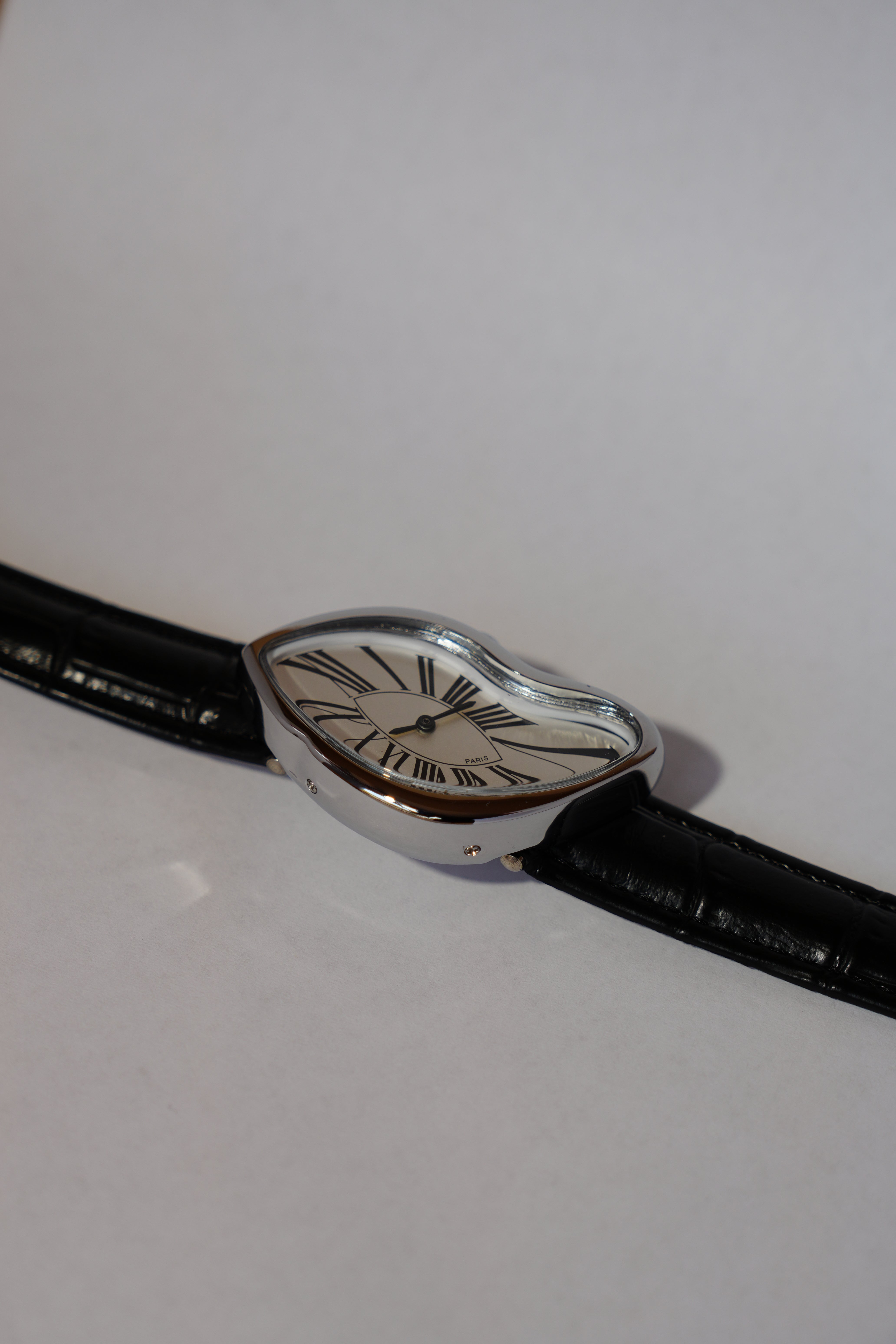 More than timekeeping - it’s a conversation starter. A vintage asymmetrical design. A crash back in time, drawing inspiration from the 1930's. Surreal sculpture for the wrist.